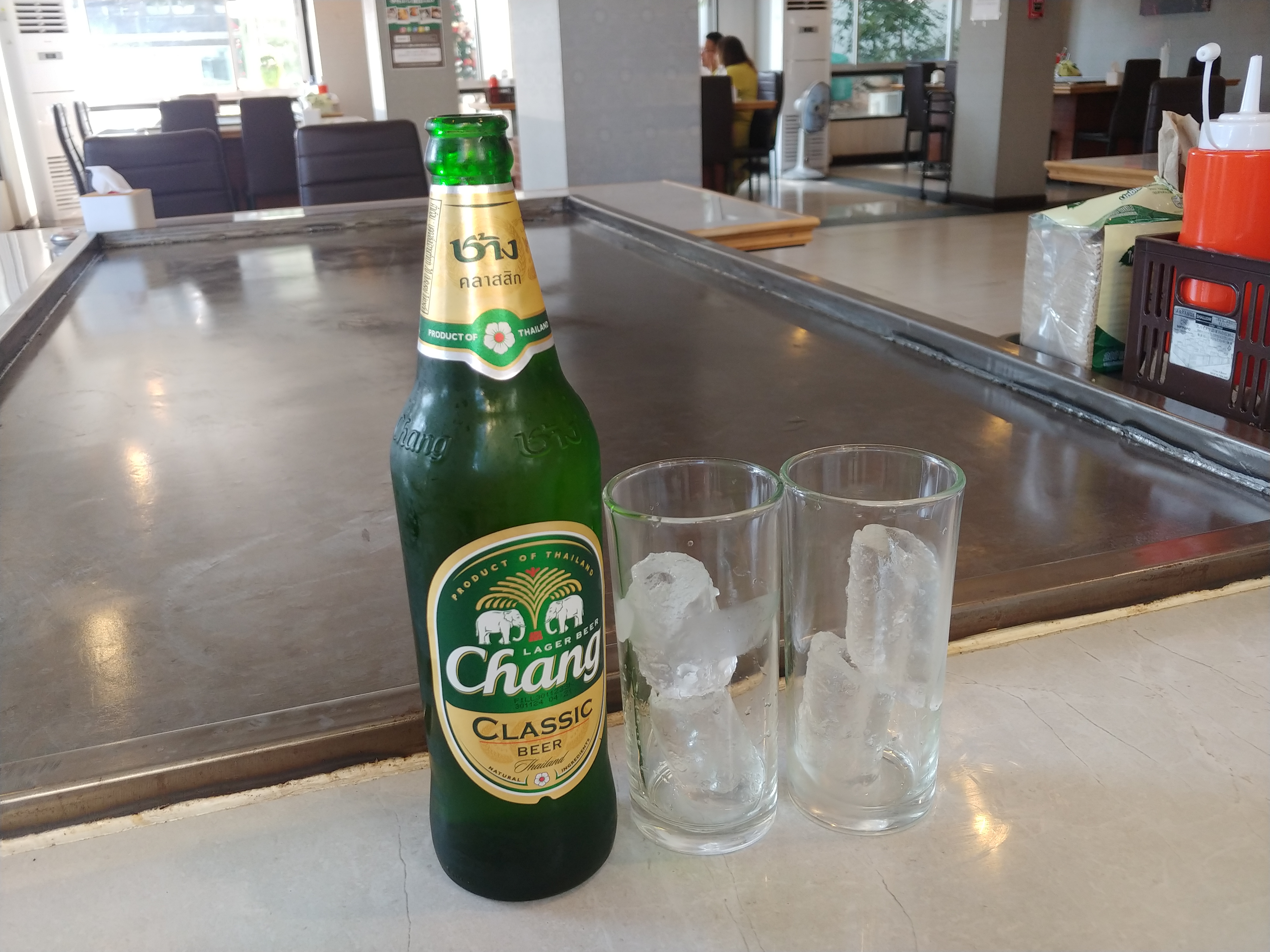 가게 구조가 참 특이했던게 철판요리 집처럼 테이블이 배치되있었다. 실제로 여기서는 삼겹살 구이를 많이 먹는다고 한다. 우린 어제 태국식 삼겹살 무카타를 먹은터라 단품을 주문해보기러 했다. 우리가 선택한 메뉴는 고추장 불고기세트(200바트)와 김밥(130바트), 떡볶이(130바트)였다. 총 다해서 18000원 정도 나왔다. 시원하게 맥주도 한잔 곁들였다.